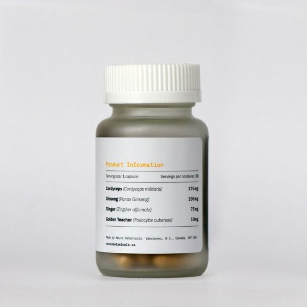 Get a competitive edge naturally with Neuro Botanicals‘ Energy blend. Research supported doses of Cordyceps, Panax Ginseng, Ginger and Golden Teacher mushrooms work together to boost stamina while improving vitality and overall physical performance.